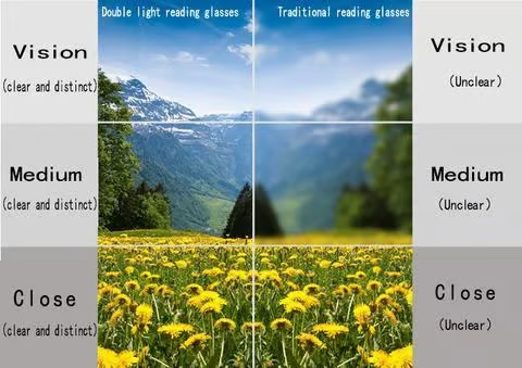 Progressive reading glasses and Traditional reading glasses contrast:
