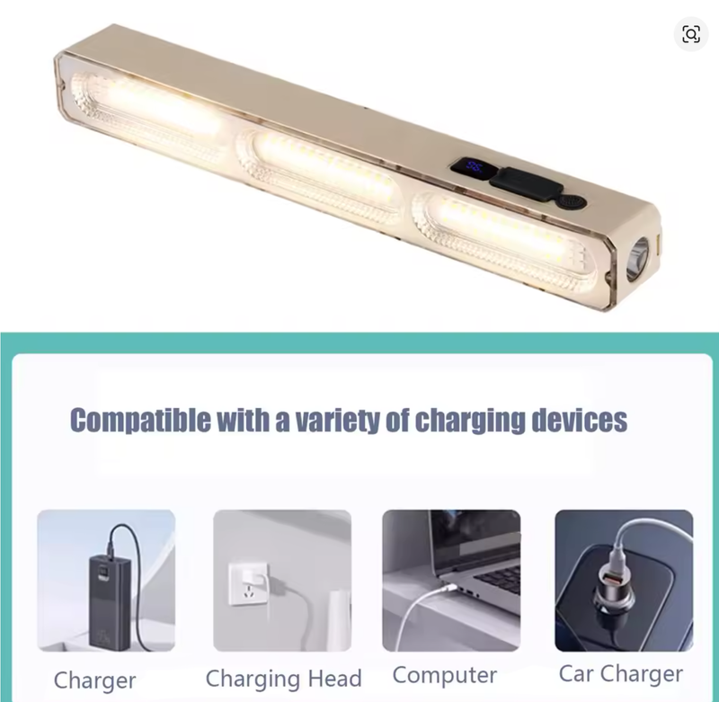 Portable and rechargeable, the magnetic light bar provides bright illumination ideal for spaces like the kitchen, bathroom, workplace, garage, bedroom, closet, drawer, vanity, vehicle, or hallway. Long-lasting battery ensures extended usability while real-time display adds functionality. The decorative design blends seamlessly into any environment for versatile use.